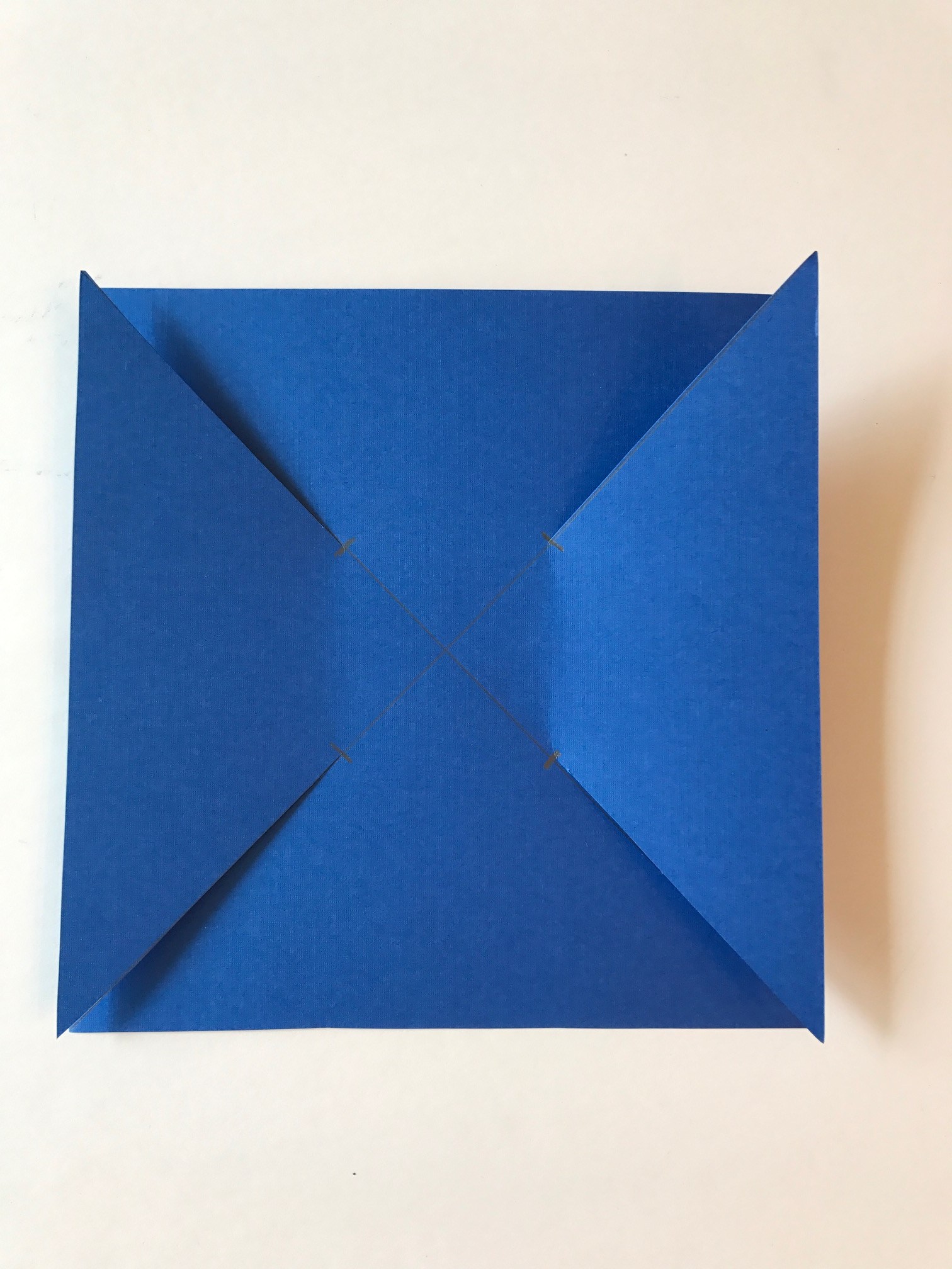 - measure and mark about 1 1/4″ from the center of the square on each of the intersecting lines