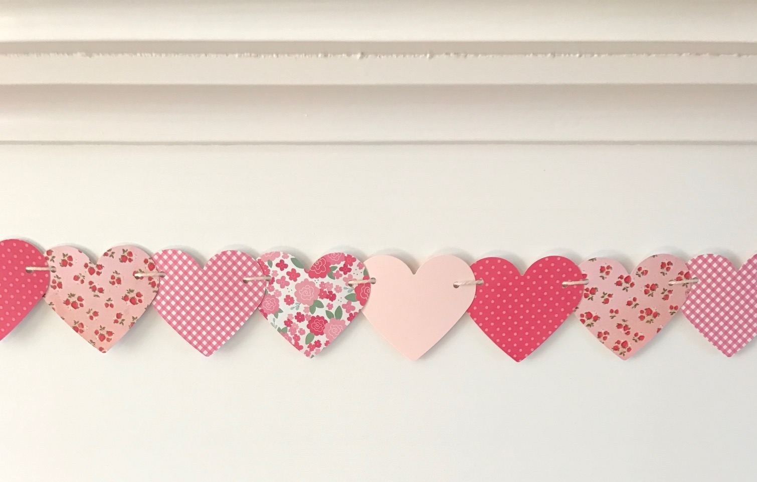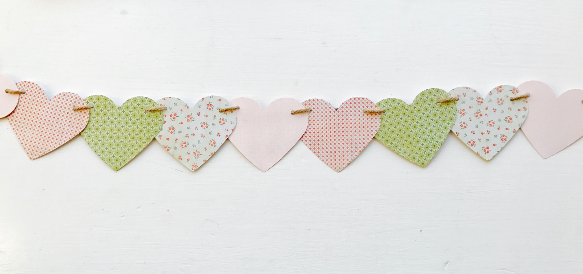These heart garlands are so darn cute! I just love making them because I can have an adorable decoration in a few short minutes–no exaggeration!